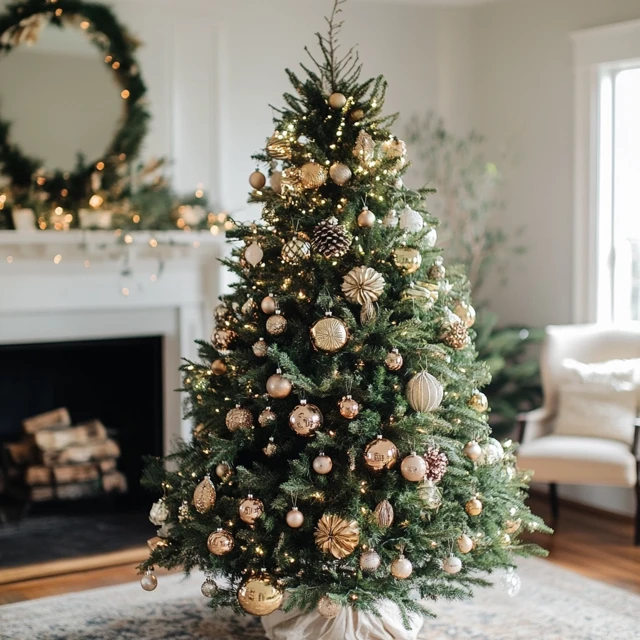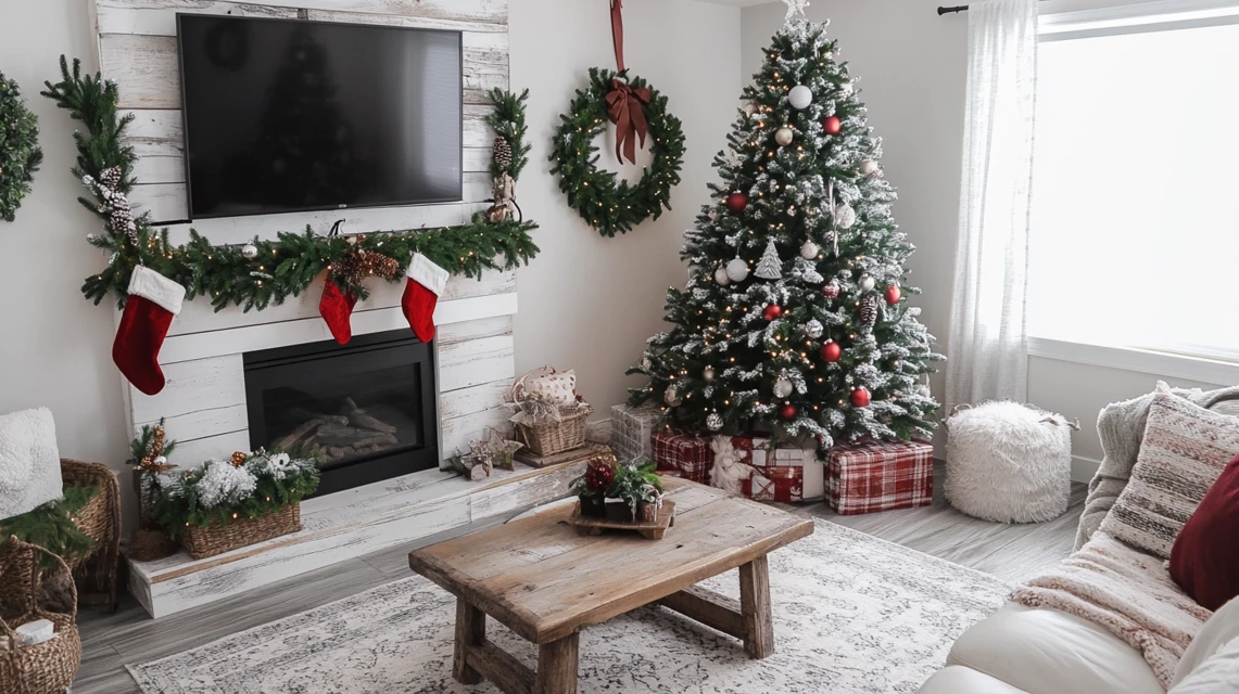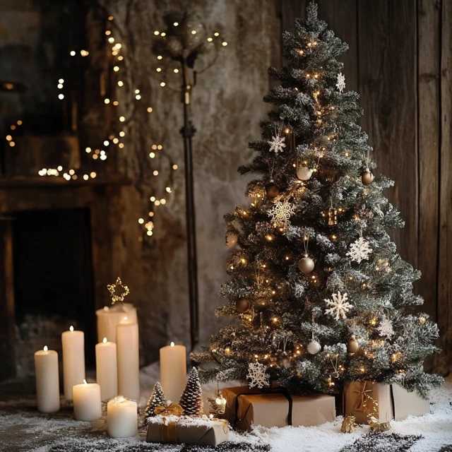 ▶ 트리 하나만으로도 아름답지만, 트리 주변을 함께 꾸미면 더 풍성한 느낌을 줄 수 있습니다. 벽난로 위에는 크리스마스 장식이나 작은 촛불을 배치하고, 트리 옆 벽에는 벽걸이형 트리 장식을 추가해 보세요. 조명과 함께 오너먼트를 함께 배치하면 조화롭고 따뜻한 겨울 분위기를 연출할 수 있습니다. 또한, 크리스마스 쿠션과 담요로 소파 주변을 장식하면 보다 완성도 높은 크리스마스 인테리어가 완성됩니다.