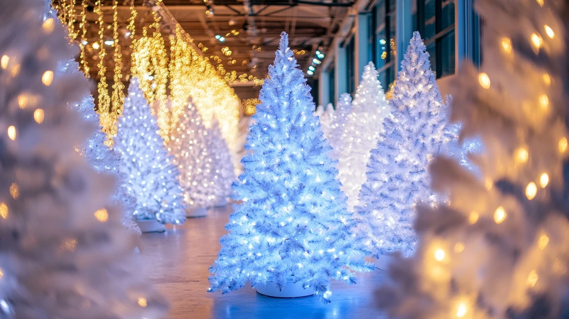 ▶ 화이트 크리스마스 트리는 조명에 따라 다른 분위기를 연출할 수 있습니다. 따뜻한 노란빛 조명을 사용하면 포근하고 따뜻한 느낌을 더해주며, 차가운 화이트 조명을 사용하면 깔끔하고 고급스러운 분위기를 연출할 수 있습니다. 블루톤 조명과 화이트 트리의 조합은 차가운 겨울 분위기를 강조해 주며, 은은하게 반짝이는 디스코볼이나 펄 조명을 더하면 트리가 더욱 입체감 있고 화려해집니다. 조명 배치는 트리의 중심에서 시작하여 아래로 내려갈수록 약간 흐트러지게 배치해도 자연스러운 느낌을 줄 수 있습니다.
