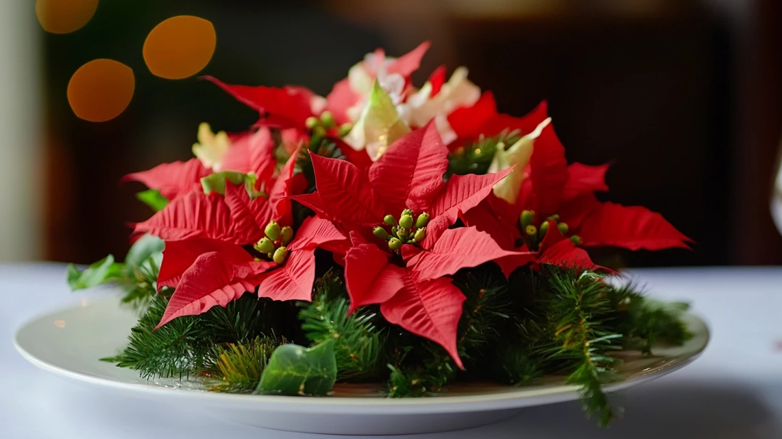 ▶ 겨울 시즌에 잘 어울리는 포인세티아와 같은 꽃 장식을 화이트 트리에 더하면 더욱 생동감 있는 분위기를 연출할 수 있습니다. 하얀 꽃 장식을 트리 가지 사이에 꽂으면 마치 눈송이처럼 포근하면서도 풍성한 느낌을 줄 수 있습니다. 또한 크리스마스 로즈나 라넌큘러스와 같은 겨울 꽃을 트리에 활용하면 자연스러운 느낌이 더해져 특별한 트리 장식을 완성할 수 있습니다.